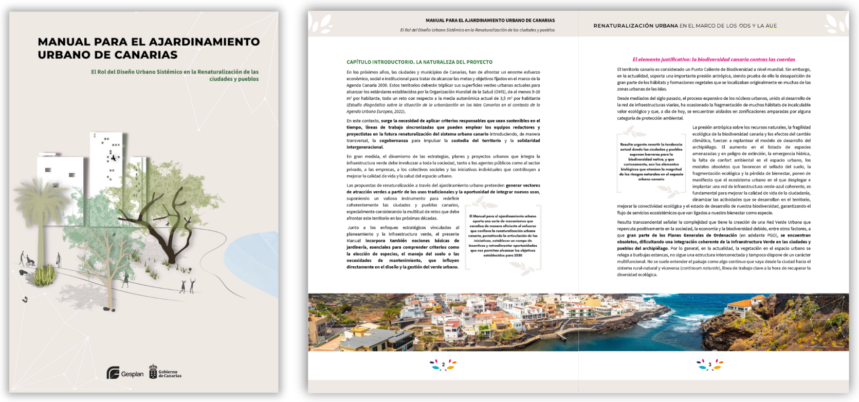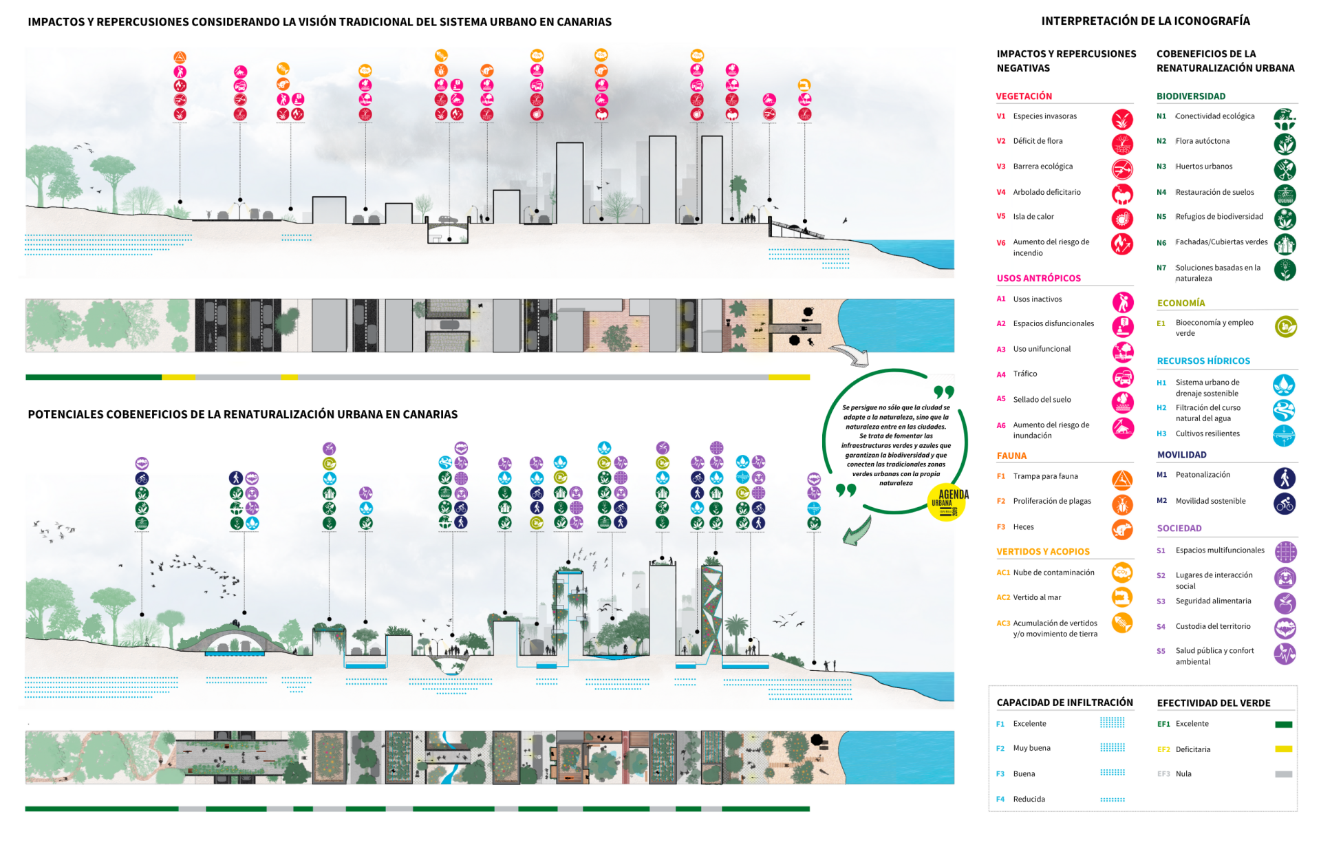 Impulsado por la Consejería de Política Territorial, Cohesión Territorial y Aguas del Gobierno de Canarias, este proyecto establece criterios interdisciplinares para orientar la renaturalización de ciudades y pueblos del archipiélago. Su finalidad es promover una infraestructura verde y azul multifuncional, integrada en el planeamiento urbanístico y en el diseño urbano, que: